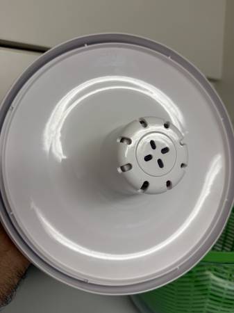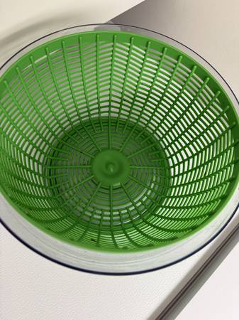 6.6 quart Faberware Easy to use Pump Salad Spinner with bowl, colander in brand new condition. Large salad spinner helps you clean and serve salads and other produce including fruits and even berries in seconds. Quick rinsing and drying produce. You can also use basket separately as a colander and the clear plastic bowl can be used as a large salad bowl or mixing bowl. Barely used, like new! Amazing deal for this product!