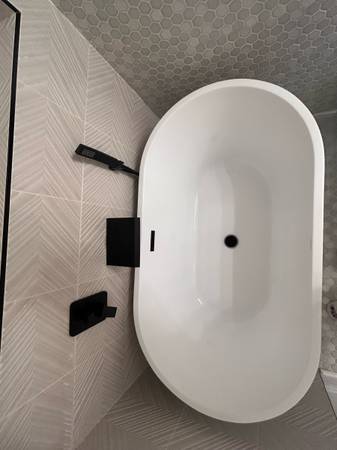 White Acrylic Stand Tub with center drain. Tub is new and never been used. I am replacing to a shower, other wise I would be keeping it. Available for PICKUP ONLY starting 12/14/25. Happy to answer...