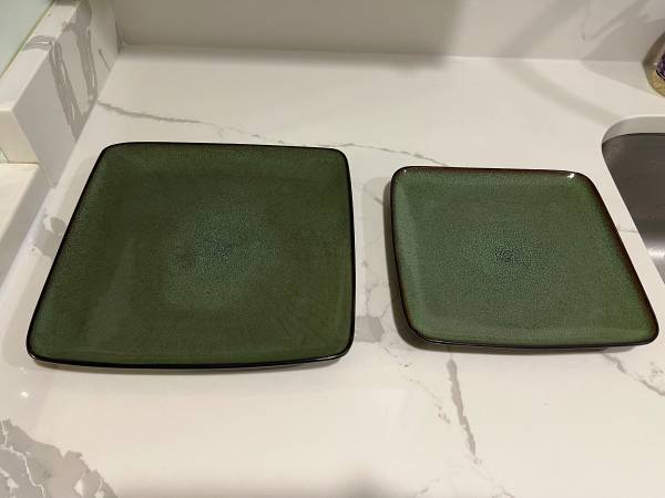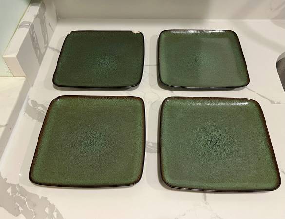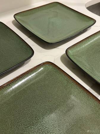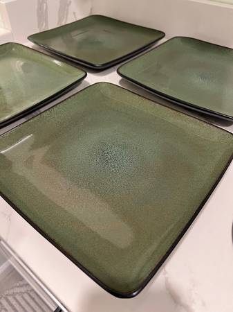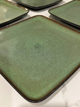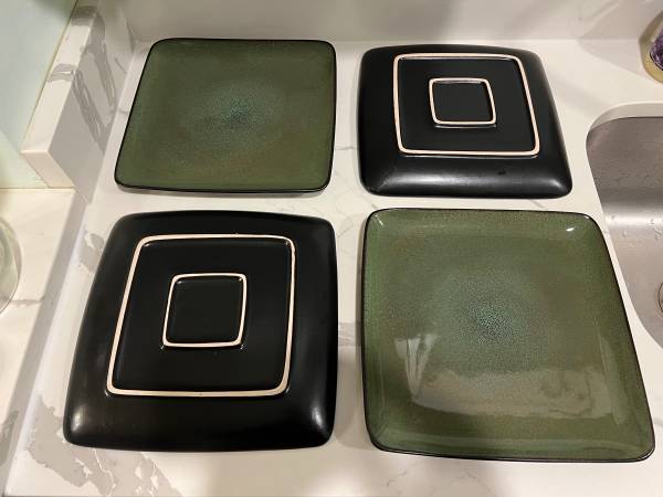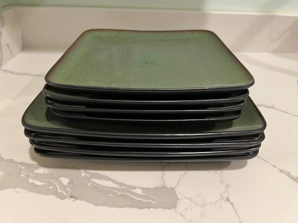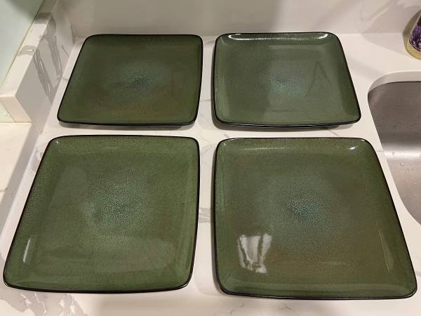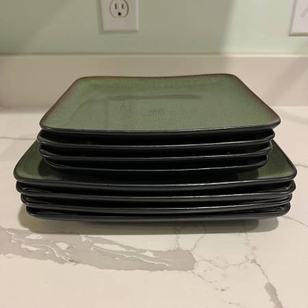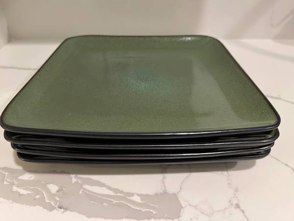 Selling this Home Trends 8 Piece Set of Square Plates, 4 Dinner & 4 Salad in Rave Green for $25 Dishwasher and microwave safe Each dinner plate measures approximately 10.5” x 10.5” x 1” - No...