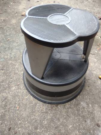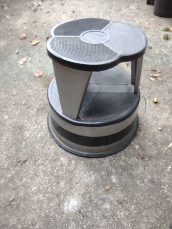 Solid, safe and functional step stool. Has retractable wheels to make it easy to push around your office, kitchen, library etc. Excellent condition.