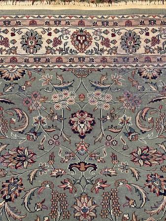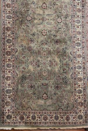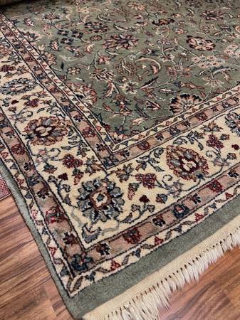 Selling this 5’ x 12’ Green Traditional Persian Design Hand Knotted Area Rug for $165 Measures 5’ x 12’ This rectangular rug features a hand knotted wool face yarn on a cotton foundation with fringe...