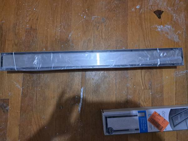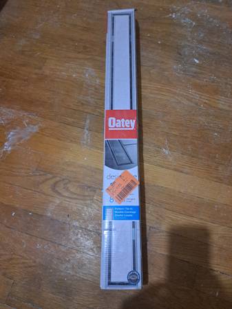 New in box linear shower floor drain (never installed). We ended up going with a different style for our project. Here is Home Depot link for more details about the set up: https://www.homedepot.com/p/Oatey-Designline-32-in-Stainless-Steel-Linear-Shower-Drain-with-Tile-In-Pattern-Drain-Cover-DLS1320R show contact info