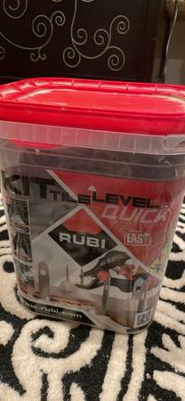 The Rubi Tile Level Quick Kit is composed of 1x Tile Level Quick nippers, usable in both flooring and walls (installing of horizontal and vertical ceramic tiles), 1x 100-unit bag of Tile Level Quick strips for use in ceramic tiles with thickness between 1/8 in. and 5/8 in., ensuring minimum grout of 1/16 in. and 1 bag of 100 units of Tile Level Quick reusable caps. All components in the Rubi Tile Level Quick kit come in a practical bucket type container with a handle for easy use and transport. The bucket type container can be reused by replacing Tile Level Quick strips or damaged or lost caps, as well as allowing the nippers to be stored away until their next use. Rubi's Tile Level Quick leveling system is ideal for installing large format ceramic tiles (minimum size required: 12 in. x 12 in.) by using the double gluing technique.