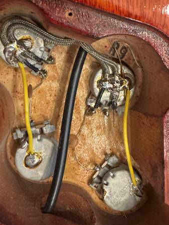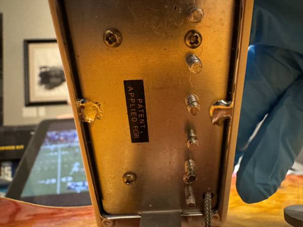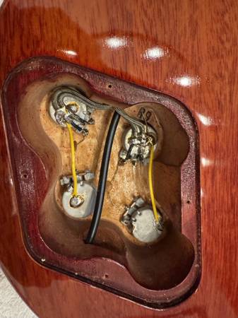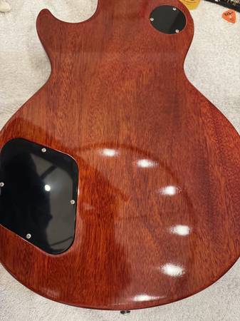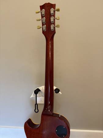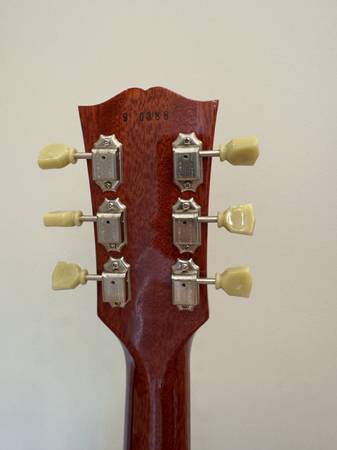 I cannot find any serious dings, scratches, or issues anywhere on the guitar. There is binding bleed as is common with reissues. There is some tarnishing on the pickups and hardware, particularly the bridge pickup, but I am sure someone can clean that off. The binding has also begun to yellow, so it is a very nice cream color.