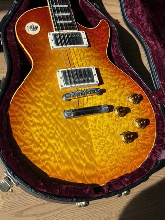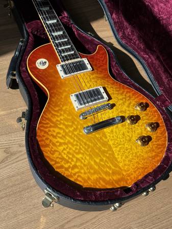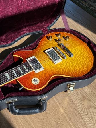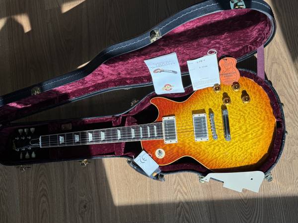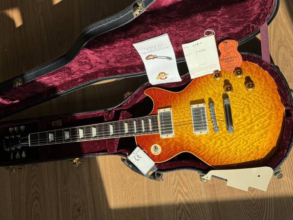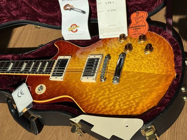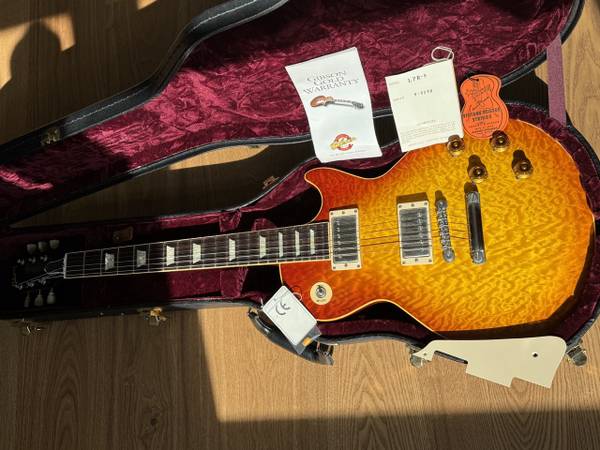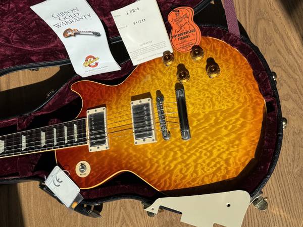 This was bought from Wildwood Guitars. In 2000, they did a run of 50 quilt top special edition '59 Reissues that originally sold out at $5,500 in 2000. I have confirmed with Gibson that this guitar was sold to Wildwood Guitars, and was an early 2000 production in heritage cherry sunburst.