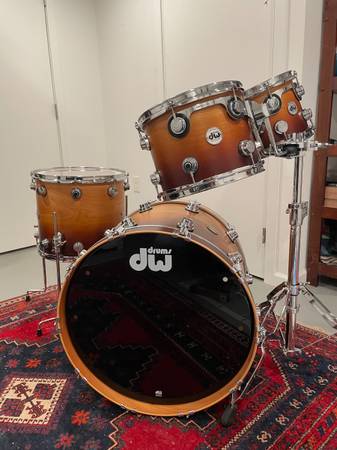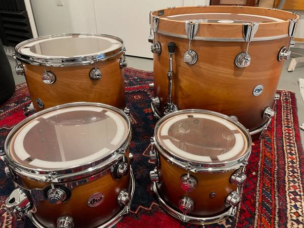 Immaculate DW Collectors Cherry VLT 4-piece Drum Set. This drum kit was a backup and unused. It has been in storage and is in mint condition.