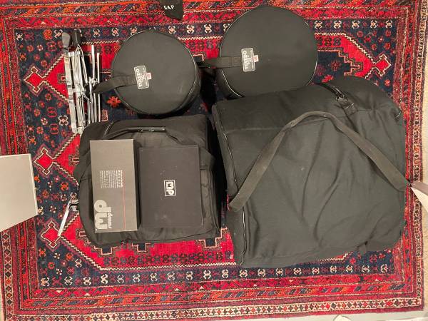 The chrome heavy duty rack tom mounting stand and a set of soft cases are included. The set is is in such good condition, it even includes the "case candy" in its original wrapping.