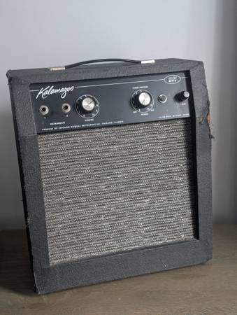 Made in the USA by Gibson in the late sixties Kalamazoo Model One 5W all tube guitar amplifier in good condition with just the scratch on the side as shown. Sounds great and has the original alnico speaker plus an updated three prong cord for better grounding.