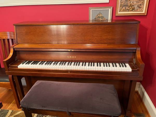 Yamaha P22 Upright Piano in walnut for sale. The piano dates to 1991. Only one owner. The piano has been well maintained and is in superb, like-new condition.