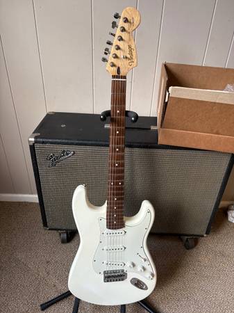 This guitar is essentially unused, as I was hoping my kids would pick it up but they didn't, but plays and sounds great, it jangles fantastically even unplugged and is really light, and its most distinctive features are its "two way truss rod" and the actual strat headstock, which has as odd a logo as you'll find (see photos for proof), which they thankfully don't use anymore. $195 cash or some combo of cash and pedals/pedalboards.