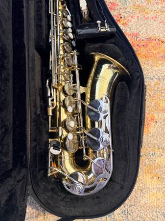 I’m selling my Yamaha YAS-23, which is a great instrument for beginners or hobby alto sax players. I’ve used this horn for 10+ years after buying from its original owner. I bought a new Selmer, which is why I’m parting with this sax. I played both horns when I got the new one and was surprised and impressed how good the sound of this Yamaha was in comparison to the new $6000+ Selmer.