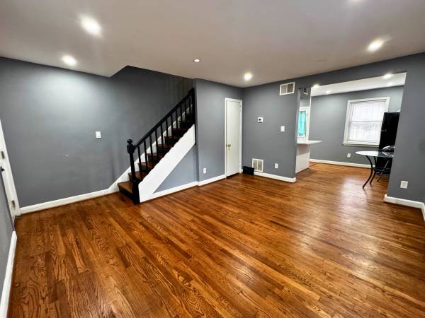 Upstairs, you’ll find two spacious bedrooms and a fully renovated bathroom showcasing elegant floor-to-ceiling tile for a spa-like feel. Hardwood floors and abundant natural light flow throughout, creating a warm and inviting atmosphere.