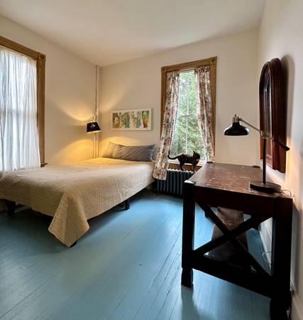 This is a sunny, fully furnished room with full access to the communal living space and kitchen. The room has two large windows, overlooks a green roof, a full-sized bed, and a desk. The home has 1.5 baths. The location is 8 blocks from the US Capitol and a short walk to Union Station or Eastern Market and H Street Corridor. Convenient to bus lines and metros and bike shares. The house is shared with the owner and 2 sweet cats. WiFi, laundry, utilities are included. Early move-in date possible. This is a month to month rental, preference given to those who want to rent for a minimum of 3 months. Early move-in possible.