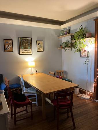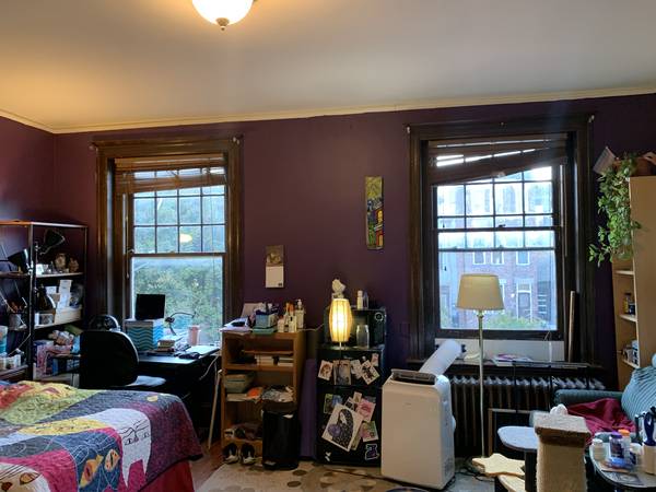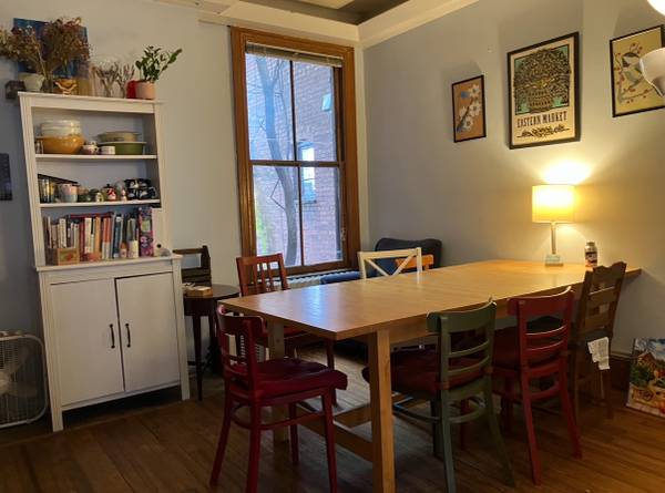We are looking for someone to join our group house in Columbia Heights for a large, sunny second floor room that shares a bathroom with one housemate for $850. Utilities usually are around $100-130/month per person. Dimensions are approx 16 x 13 ft, ceiling around 9ft. It easily fits a queen-sized bed, desk, couch, and dresser and it includes a large closet.