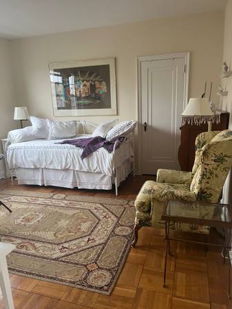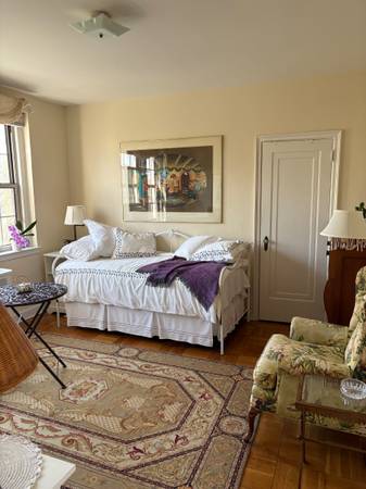 NOVEMBER START (possibly OCTOBER): Furnished ROOM for considerate, mature, serious female graduate student scholar/academic/ professional (have housed many Fulbrighters, Rotary, and Think Tank scholars). Lovely sunny and large private room very conducive to work or study; shared bathroom; kitchen (light use) available in beautiful, furnished, Cleveland Park apartment to be shared with mature professional. Flu and Covid-19 cautious. Safe, charming neighborhood near grocery/shops. No smoking; no pets. Available beginning in NOVEMBER 2025; long- or short-term. Great location; 45-minute walk to SAIS, American University, GW (Foggy Bottom), and Georgetown campuses; bicycle-friendly routes; metro bus and red line subway-access (within two blocks) to universities, World Bank, IMF; IDB; embassies; Metro Center, Farragut Heights, Tenleytown stations, etc. Internet/all utilities included - except phone. Twenty-four hour front desk security; laundry room in lower level. $1195/month; $1195 security deposit. Email: craigslist or call show contact info