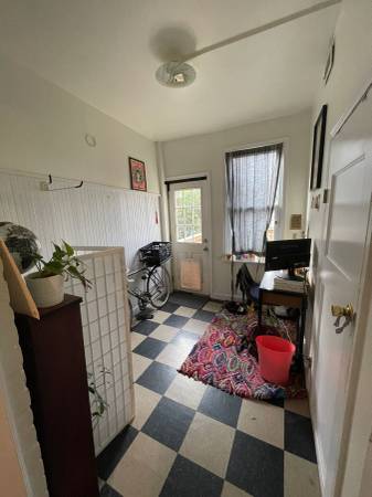 - Shared parking spot in the back - housemates rotate who uses each month - easy to find street parking rest of year.