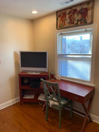 TOP LEVEL NEAR CAPITOL HILL AREA, UTIL./WIFI INCLUDED! Huge furnished room and office/den in lovely home on quiet tree-lined street. All utilities, heat, water, gas, electric, cable, and wireless internet included. DW, CAC, recessed lights, large rear deck and driveway in rear. Furnished with queen bed, sofa bed, dresser, television, night stands, desk, etc. Includes linens. House is 1150SF, top floor in 350SF. Exclusive use main floor kitchen.