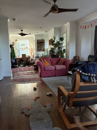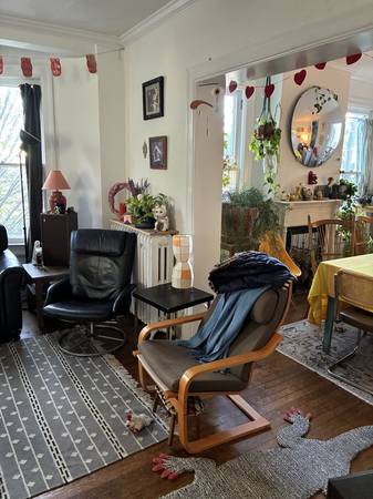 The house is a four-bedroom, two-level home on the 2nd and 3rd floors of a larger row house. The house is at the end of the block, so it has tons of windows and natural light. There is a large shared common area and kitchen. There are two shared bathrooms in the house, one on the third floor and one on the second. We have bike storage in the entry, stuff storage, and laundry in the basement. We are steps away from Rock Creek Park, about a 10-15 minute walk to Mt. Pleasant Street, and a 20-minute walk to Columbia Heights!
