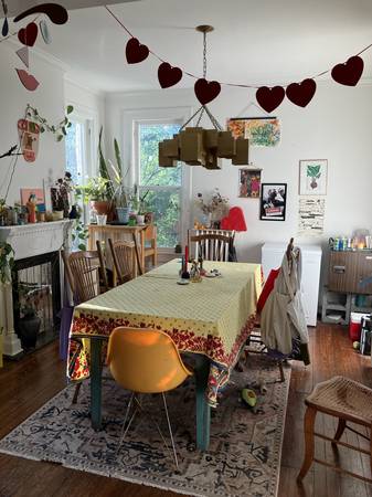 We are three late 20's/early 30's folks + one sweet dog. We are all friends and love sharing a home, making art, cooking meals, etc. We would love a new housemate who is also into that stuff... but no worries if not, though.