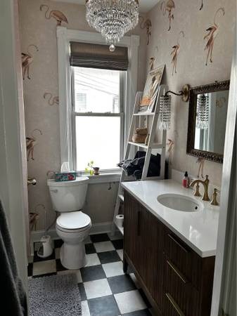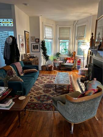 About the house: hardwood floors, a fireplace, and bay window reading nook in the common area. Fully-stocked kitchen and a fully-furnished living/dining room. Common half bathroom on the first floor. Within walking distance of Whole Foods and Aldi. We have some attic space as well for storage.