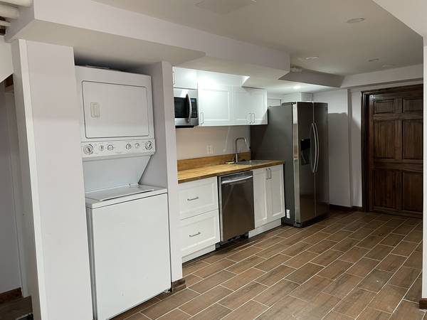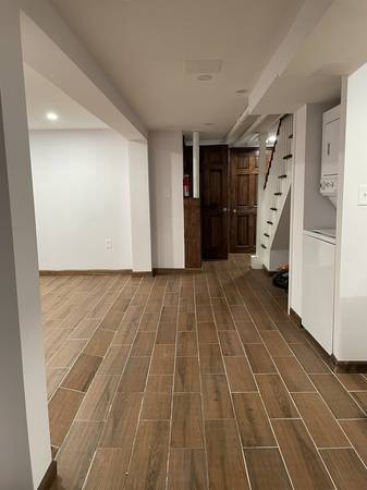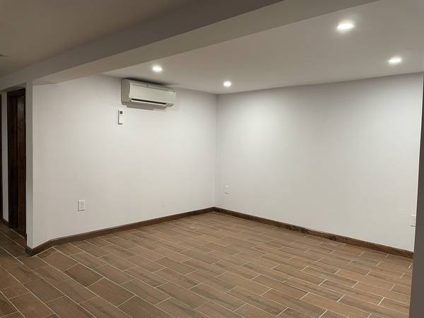 The open bedrooms are on the basement level. The basement is newly finished and is basically its own apartment with a separate rear entrance, kitchenette, laundry, living room, two bedrooms, and one full bathroom. The bedrooms both get natural light and measure 11’x10.5’ and 10.5'X8'. These rooms are unfurnished share a full bathroom.