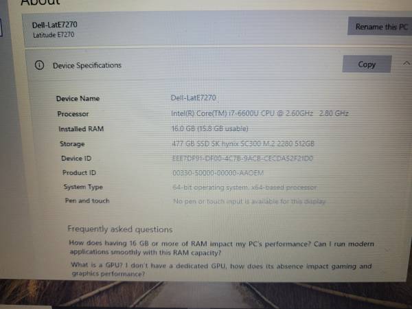 14" Dell Latitude e7270 business laptop No problems; diagnostics passed on all components (see pictures) Excellent physical condition Very nice laptop Light-weight Windows 10 Pro Microsoft Office...