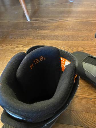 Worn twice! (As in worn for a total of two snowboarding days.) These size 13 boots are in pristine condition, but ultimately they were too big for me, and I wanted to go with step-on’s. They cost just over $200 when I bought them in January. They’re lightweight, good for people with wide feet. Quality boot. Mnfr description below. I’m in Chevy Chase DC.