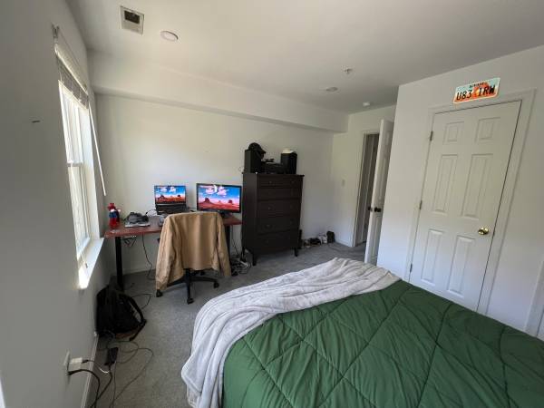 The home has a very large, updated kitchen with access to the backyard, recess lighting throughout, all brand-new windows, blinds, carpet and high-speed wireless Internet/cable access. The house also has dedicated parking spots in the back (additional fees apply). No room sharing, no pets, and no smoking inside the house. Flexible to do in-person or virtual shows. Rooms come furnished and have large deep wall to wall closets with two windows overlooking the tree-lined street or the backyard.