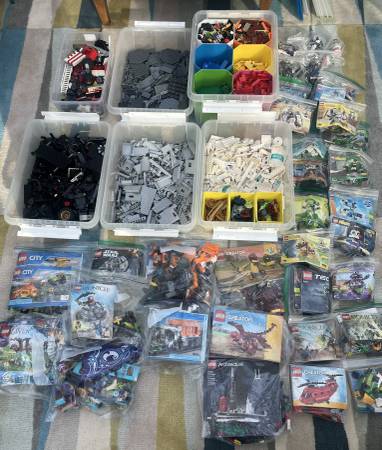 Very large collection of Lego sets and pieces organized in ziplocs and containers for sale. Sets from multiple series, including City, Castle, Ninjago, Bionicle, Mixels, Elves, Creator, Star Wars, Technic, Architecture. Dozens of mini-figures. $150 for all. Bins included. Please see picture or email for more details.