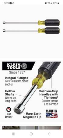 Klein magnetic 6in. nut driver 2pc. 1/4 and 5/16 set, asking $15.00 cash.
