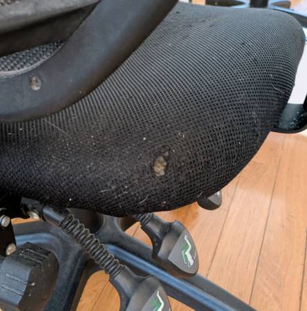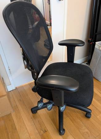 Free office chair. Comfortable and works well, just a little dusty and has one small tear in the webbing (not in a spot where it touches while sitting). Pickup near 3rd and G St SW.