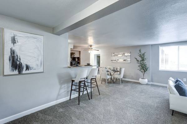 DESCRIPTION: Check out this recently updated two-bedroom, one-bathroom apartment available at The Milano. This floor plan comes designed with all of the storage space you need, including a walk-in coat closet and an elongated wall-to-wall closet in the master bedroom. In the kitchen, you’ll find contemporary cabinetry with a rich grain, granite-look counters, and a black appliance package. Adjacent to the kitchen, the combined living and dining area has plush carpeting to increase the comfort. To make life in the community easier, The Milano offers a laundry facility. During your free time, you can relax in the pool or take your pets to the dog park. The fitness center is open twenty-four hours daily for your convenience. Services include on-call maintenance and on-site recycling. Request your private tour today.