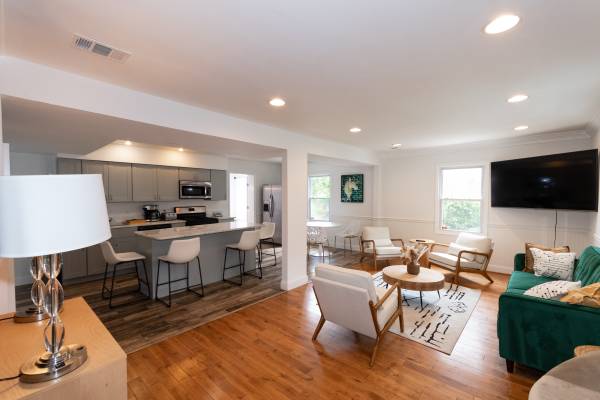 Our stunning five-bedroom fully furnished vacation rental home includes one queen size bed, three full sized beds as well as two sofa beds. This luxurious retreat boasts spacious and elegantly furnished bedrooms, perfect for accommodating large families or groups of friends. As you step inside, you'll be greeted by a bright and airy living space, featuring stylish decor and comfortable seating areas for relaxation and socializing. The gourmet kitchen is fully equipped with modern appliances and ample counter space, ideal for preparing delicious meals during your stay. Outside, you'll find a private patio area, perfect for enjoying al fresco dining or simply soaking up the sun.