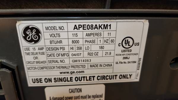 Selling a fully functioning GE 8,000 BTU Portable Air Conditioner (Model APE08AKM1). This unit cools really well and has been tested—compressor, fan, and controls all work great.