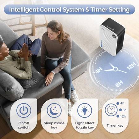 【Humidity Display & Timer Setting】KeepGlad home dehumidifier has digital humidity display, you can monitor the humidity in real time. (Note: The real-time humidity reading reflects the air at the inlet, which may differ slightly from external humidity meters.) Dehumidifier for home with timer preset where you can set the time(4/8/12 H) based on your schedule. Set it and forget it! The dehumidifier will automatically powering down when timer is finished