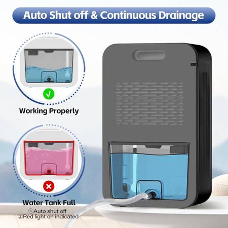 【Automatic Shutdown Protection & Drain Hose】Our dehumidifier for basement will automatic shutoff when the water tank is full or in a wrong position, prevents water from overflowing. KeepGlad dehumidifier offers two drainage options. You can choose to manually empty the tank with the removable tank. For use in basements, laundry rooms, and RVs, dehumidifier included drain hose enables continuous drainage—eliminating the need to manually empty the tank