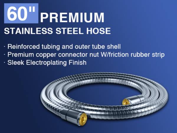 【High-Quality Materials + 60-Inch Stainless Steel Hose】This shower head is made of high-quality ABS material and comes with an additional 60-inch flexible hose, ensuring rust-free and non-toxic properties to guarantee a safe bathing environment. It's suitable for use by children and pets at home with peace of mind.