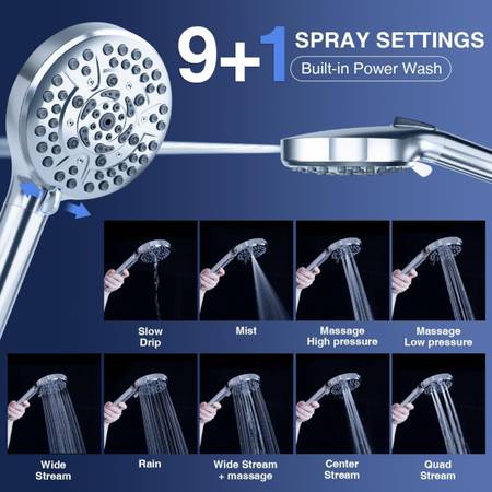 【Innovative 9+1 Modes】Our product features 9 different spray modes, including mist, wide flow, low-pressure massage, four-flow, high-pressure massage, central flow, rain, and more, meeting various needs. Additionally, it comes with a built-in high-pressure spray function.