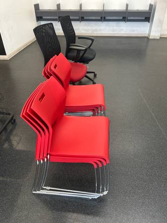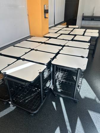 Used small table tops for laptop with shelves and waiting chairs or office chairs. $5 each
