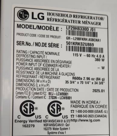 Brand new LG refrigerator with 5-year protection plan from Home Depot