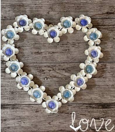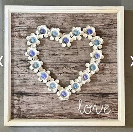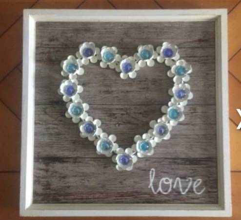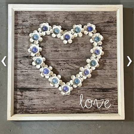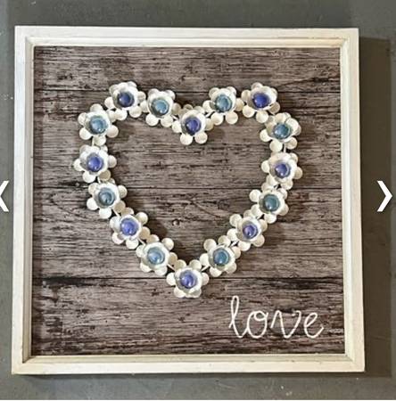 Metal love heart with glass pieces in the centers of the flowers for $20. Measures: 16" x 16". See my other postings with the user link. ~ Kathy