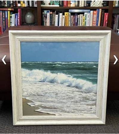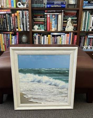 Ocean framed picture for $20. Measures: 22 1/4" x 22 1/4" See my other items with the "more ads by this user" link. ~ Kathy