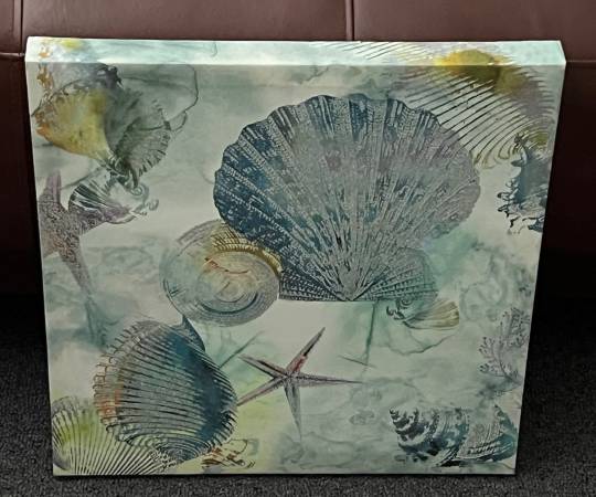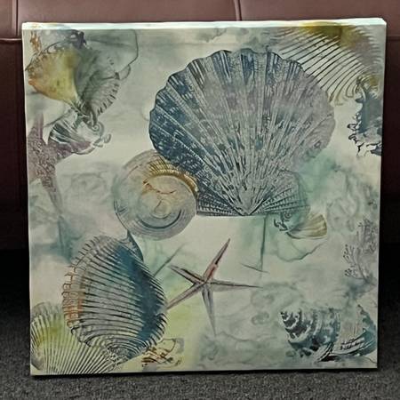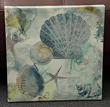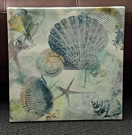 Seashell canvas for $15. Measures: 15 3/4" x 15 3/4". View my other postings with the "more ads by this user" link. ~ Kathy