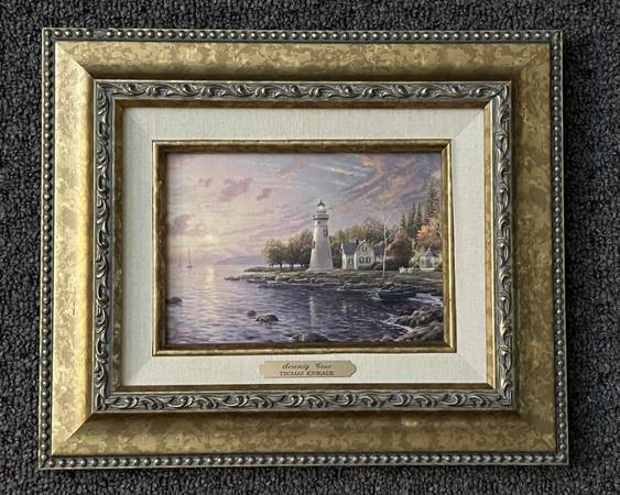 Thomas Kinkade Serenity Cove well framed for $30. Measures: 10" x 12" Certificate is attached to the back. See the "more ads by this user" link for other items I am selling. ~ Kathy