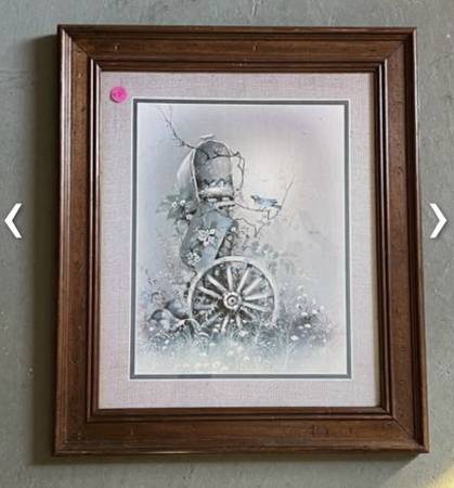 Blue Birds with mailbox art for $20. Measures: 20 1/2" high by 17 1/2" wide and has a glass front and wood frame. View the user link Craigslist provides to see the rest of my postings. ~Kathy
