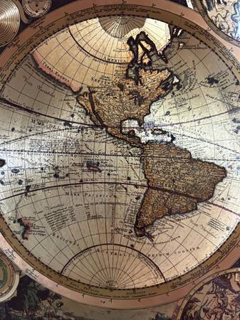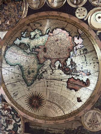 The map is perfect for anyone who loves antiques, maps, and globes, or anyone who appreciates the beauty and historical significance of this particular map. It is a great conversation piece and a unique piece of decor that will add character to any room. Don't miss out on the opportunity to own this stunning vintage world map.