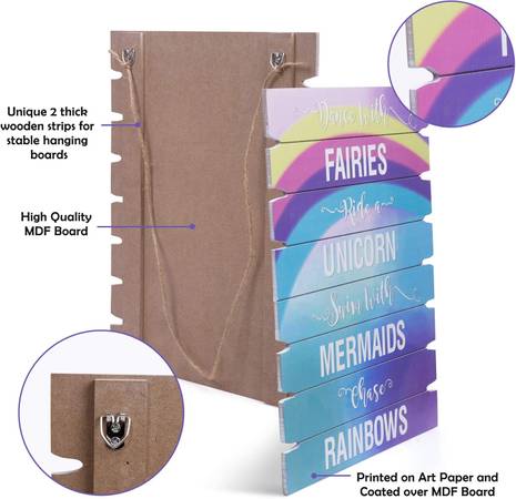 GEMTEND Unicorn Wall Decor for Girls, Rainbow Wall Hanging Sign for Teen Girls, Rainbow Unicorn Party Decorations Wooden for Kid's Bedroom, Nursery, Gift for Unicorn, Mermaid, Fairy, Rainbow Lovers