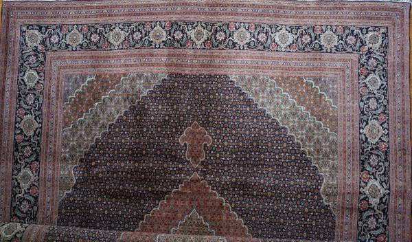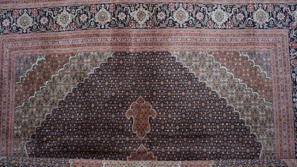 Scarce authentic Persian rug from the 80's not used, measures 11'5"x8'4" extremely tightly knotted (last image) baby lamb's wool outlined with pearl color caterpillar natural silk.