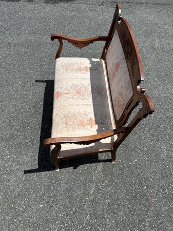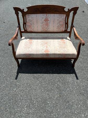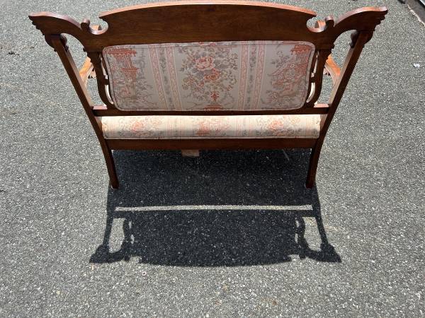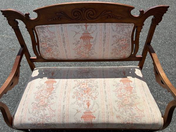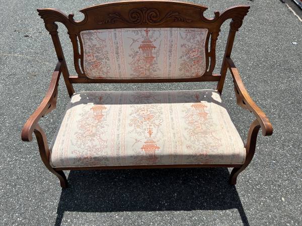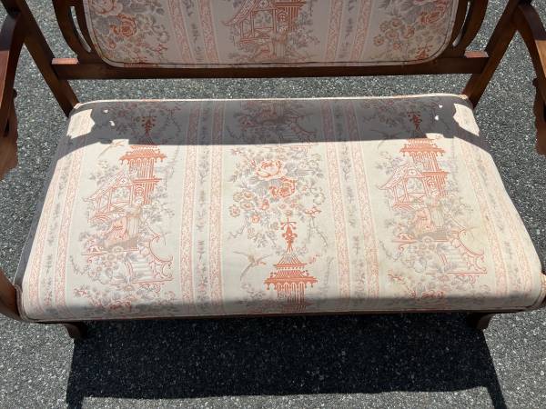 Gorgeous conversation piece to add to your space! It measures 44x22.5x37 It has a beautiful Japanese inspired design on the fabric Delivery available!!