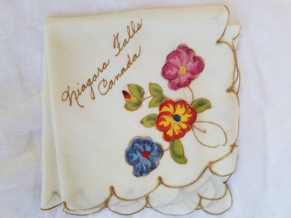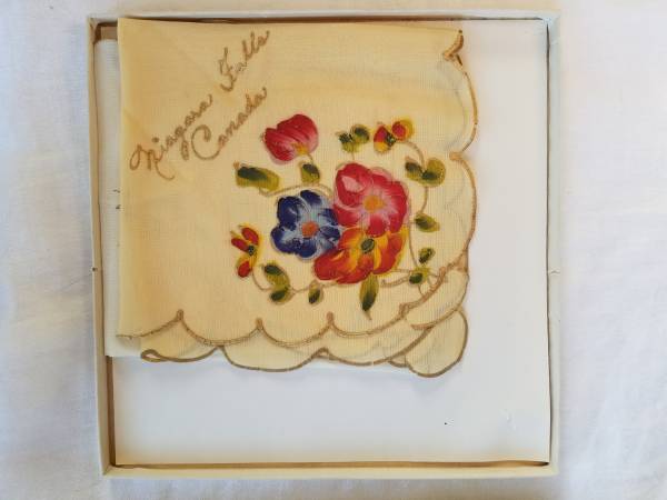 Lovely old pair of Niagara Falls Hankies, never used, new in original gift box. Gorgeous embroidery and color. $30 for both.